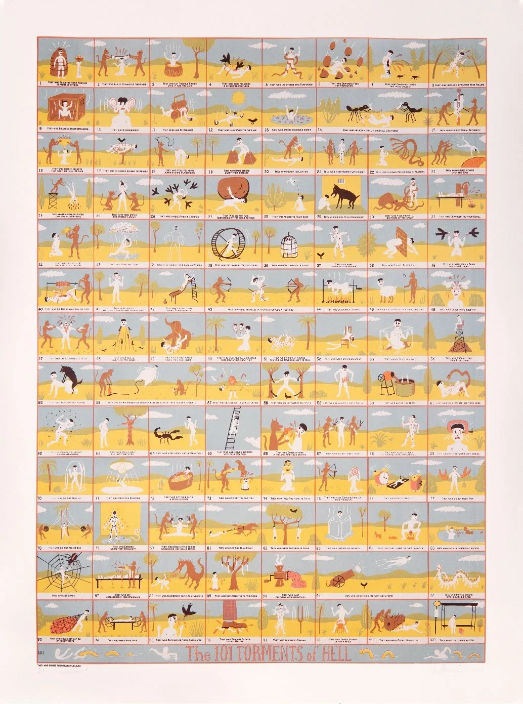 Malcolm Le Smith in collaboration with Krack Studio, The 101 Torments of Hell 2024. Screenprint on 100% cotton Clairefontaine paper 200 x 150 cm.